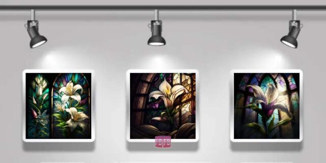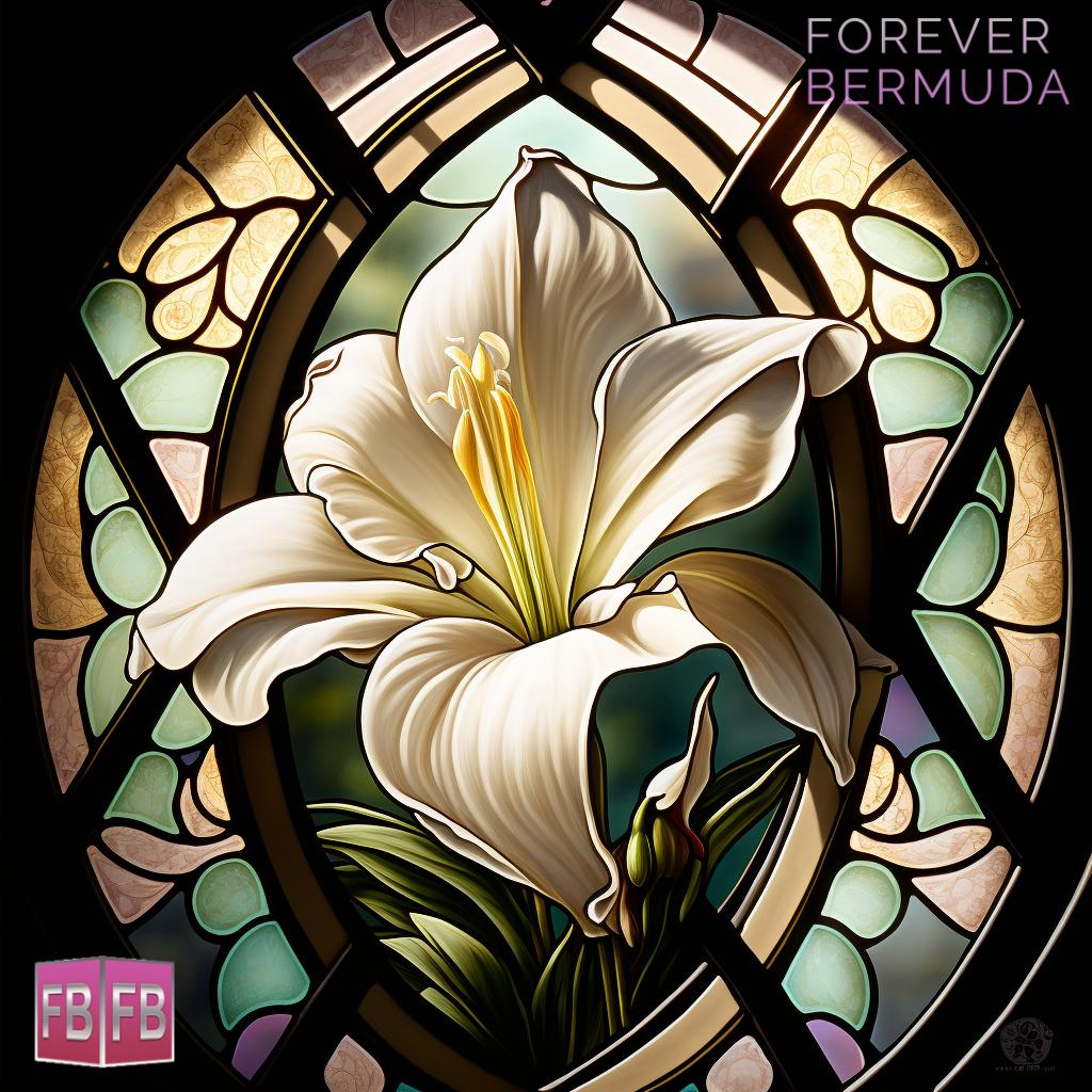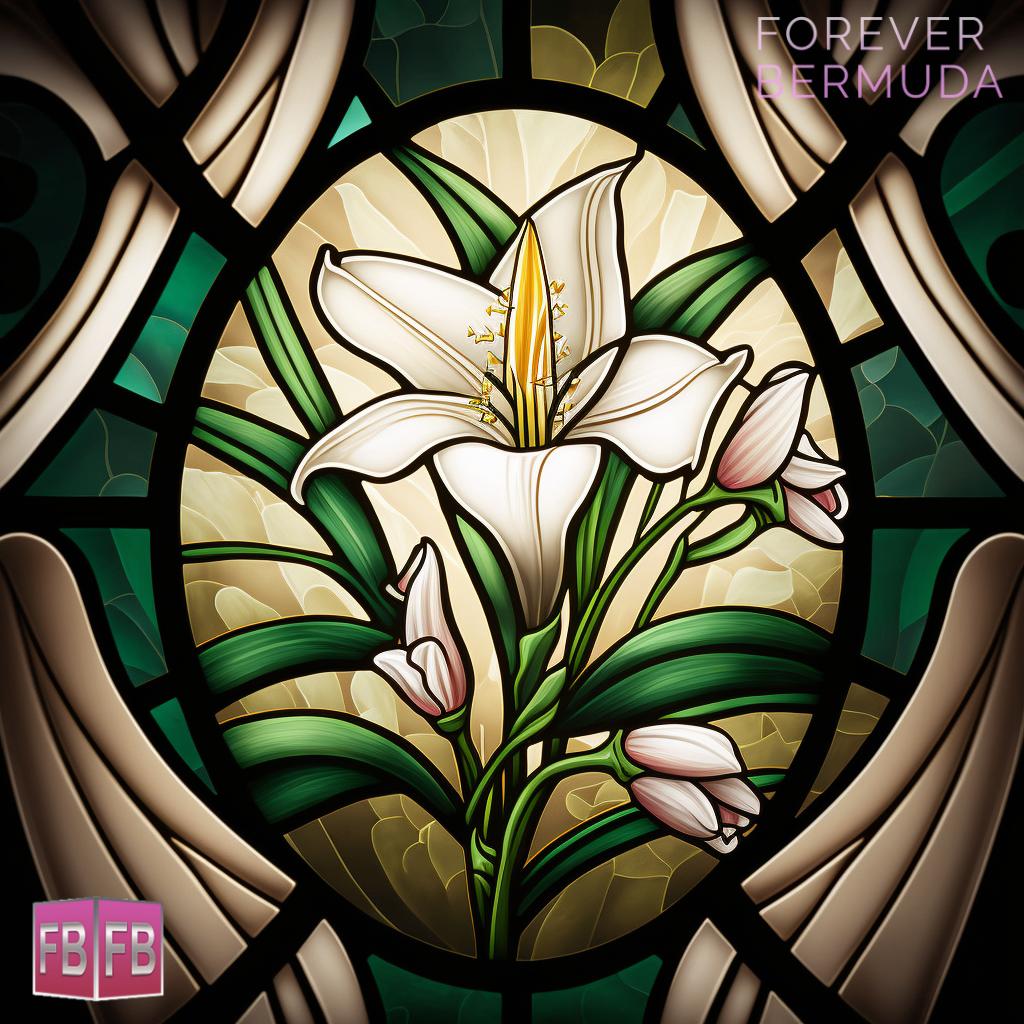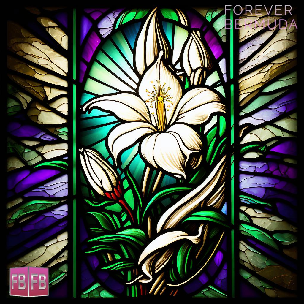 This week’s virtual art photo gallery from Forever Bermuda features Easter lily stained glass windows, with sunlight streaming through to create a vibrant display.
